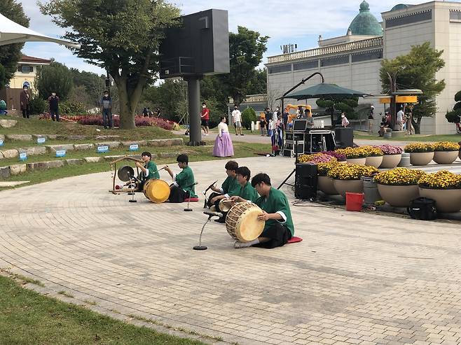 | ▲ 사물놀이 임실필봉농악의 사물놀이가 임실치즈테마파크에서 흥겹게 공연된다. |