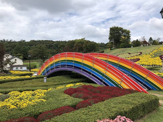 순천완주고속도로의 임실IC를 나오면 곧 오른쪽 언덕에 이국적인 건물과 풍경이 펼쳐진다. 365일 동화 속 치즈 세상인 임실치즈테마파크다. 가을을 맞이하여 국화꽃의 노랗고 하얀 밝은 색채에 마음부터 가벼워진다.