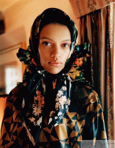 프린바이손튼브레가찌의 낭만적인 2021 F/W 컬렉션의 뷰티 키워드는 우아한 퍼플 아이섀도. 눈을 강조한 메이크업인 만큼 피부 톤은 자연스럽고 깨끗하게 정돈하는 것이 중요한데, 먼저 프라이머를 사용해 결점과 요철을 가리고 피부 톤에 맞는 가벼운 제형의 파운데이션으로 매끈하게 커버한다. 그다음 톤 다운된 연한 퍼플 컬러 아이섀도를 눈 앞머리부터 눈꼬리까지 가득 펴 바르는데 이때 블렌딩 노하우가 필요하다. 퍼플 컬러 아이섀도는 눈두덩에 그러데이션하면 올드해 보일 수 있으므로 브러시에 아이섀도를 듬뿍 묻힌 뒤 도장을 찍듯 눌러주는 느낌으로 바르고, 여러 번에 걸쳐 가볍게 쓸어주면 경계선 없이 꽃잎이 물든 것 같은 눈매가 완성된다. 눈에 힘을 줬으니 다른 부위는 컬러감을 덜어내는 것이 정답. 마스카라, 볼터치, 아이라인 모두 생략하고 입술도 립밤 정도만 발라 마무리할 것.