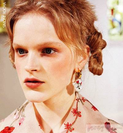 로맨티시즘을 대표하는 시몬로샤의 F/W 뷰티 룩 메인 테마는 톤 다운 핑크. 레이스와 러플, 하늘하늘한 시폰 등 섬세하고 러블리한 디테일이 매력적인 의상과 한 세트처럼 잘 어울리는 조합이다. 메이크업 완성도를 좌우하는 것은 깨끗하고 말간 피부 표현. 번들거리는 광채 피부도 아니고, 너무 파우더리한 상태도 아닌 딱 그 중간 정도라고 보면 되겠다. 특히 칙칙한 눈 밑 다크서클, 코와 입 주변은 피치 빛 컨실러로 밝게 커버할 것. 톤 다운 핑크 컬러 블러셔는 촉촉한 크림 타입 제품을 추천한다. 최대한 힘을 빼고 손끝으로 톡톡 두드려 레이어링하면 텁텁함 없이 맑고 투명한 느낌으로 연출할 수 있다. 립은 살짝 코럴이 가미된 핑크 립스틱을 꽉 채워 바르면 톤온톤으로 자연스럽게 연결된 느낌의 로맨틱한 가을 메이크업이 완성된다.