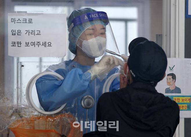 [이데일리 김태형 기자] 가을을 재촉하는 비가 내리는 가운데 29일 오전 서울역광장 코로나19 임시선별검사소에서 시민들이 검사를 받고 있다.