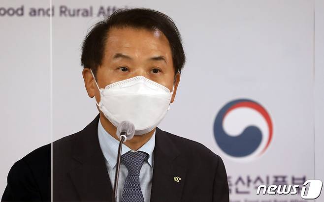 (세종=뉴스1) 장수영 기자 = 윤영배 aT(한국농수산식품유통공사) 농식품거래소 본부장이 29일 정부세종청사 농림축산식품부 기자실에서 '공공급식 전자조달시스템 추진방향' 브리핑을 하고 있다. 2021.9.29/뉴스1