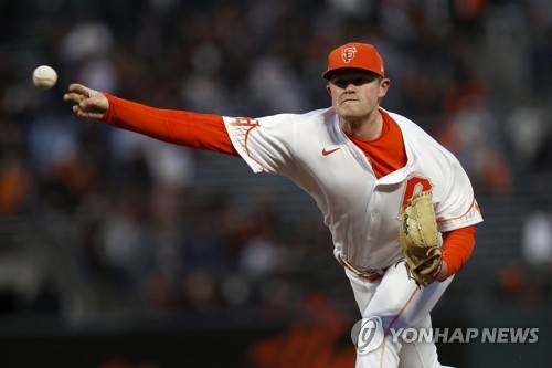 epa09494629 San Francisco Giants starting pitcher Logan Webb releases a pitch against the Arizona Diamondbacks during the first inning of their MLB game at Oracle Park in San Francisco, California, USA, 28 September 2021. EPA/JOHN G. MABANGLO