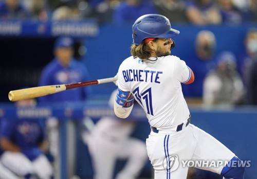 토론토는 29일(한국시간) 로저스 센터에서 열린 2021 메이저리그 뉴욕 양키스와의 홈 경기에서 2-7로 패했다. 이날 패배로 토론토는 87승 70패를 기록, 아메리칸리그 와일드카드 2위 보스턴 레드삭스(88승 69패)와의 승차를 1경기에서 좁히지 못했다.