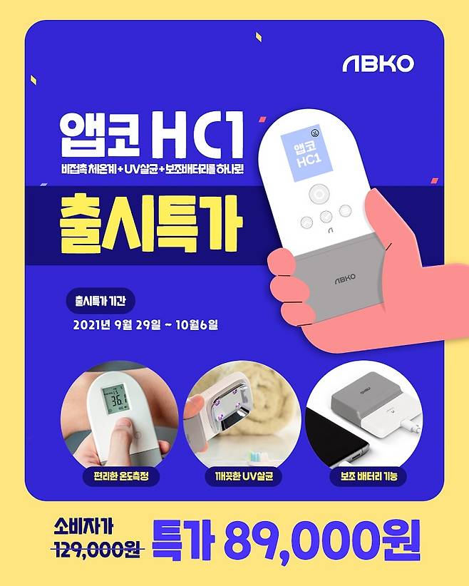 앱코 관계자는 “외출이 어려운 요즘, 보다 안심하고 외출하기를 바라며 기획하게 되었다”라며 “체온계, UV 살균기, 보조배터리 기능을 담아낸 HC1이 소비자들의 불안과 불편함을 조금이나마 덜기를 바란다”고 전했다.