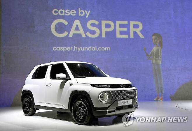 (서울=연합뉴스) 현대자동차가 29일 캐스퍼 온라인 발표회 '캐스퍼 프리미어'를 열고 본격적인 판매를 시작했다. 사진은 발표 행사에서 모습 드러낸 엔트리 SUV '캐스퍼'. 2021.9.29