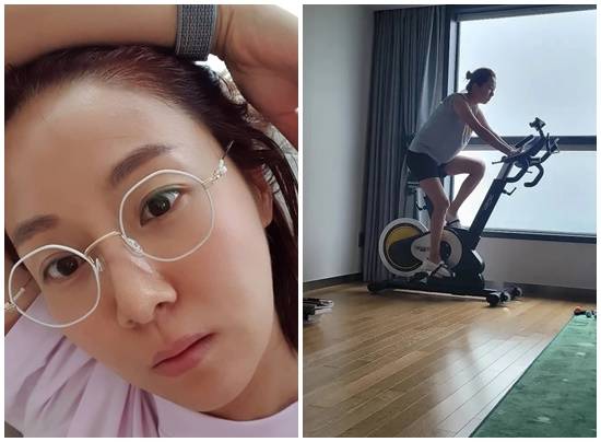 공개된 사진 속에는 김지혜가 사이클 운동 기구에서 열심히 운동을 하고 있는 모습이 담겼다.