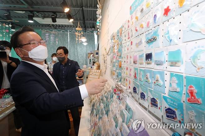 (속초=연합뉴스) 김주형 기자 = 김부겸 국무총리가 29일 오후 강원도 속초시 중앙동에 있는 속초 청년몰을 방문해 둘러보고 있다. 2021.9.29