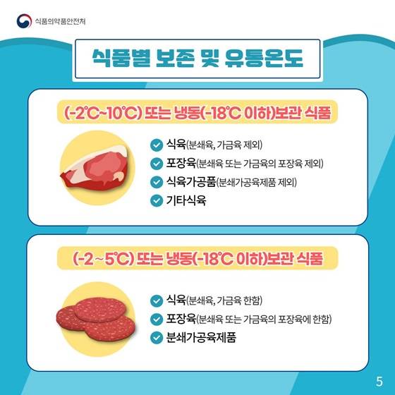 (-2°C~5°C) 또는 냉동(-18°C 이하)보관 식품