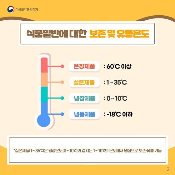 * 실온제품(1~35°C)은 냉장온도(0~10°C)와 겹치는 1~10°C의 온도에서 냉장으로 보존·유통 가능
