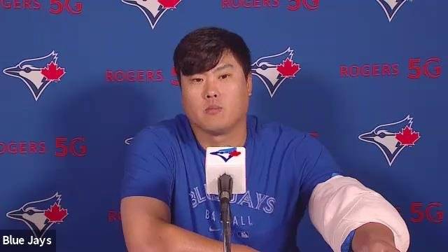 (서울=연합뉴스) 토론토 블루제이스 류현진이 29일(한국시간) 캐나다 온타리오주 토론토의 로저스센터에서 열린 2021 미국프로야구 메이저리그(MLB) 뉴욕 양키스와 홈 경기를 마친 뒤 화상 인터뷰를 하고 있다. 2021.9.29