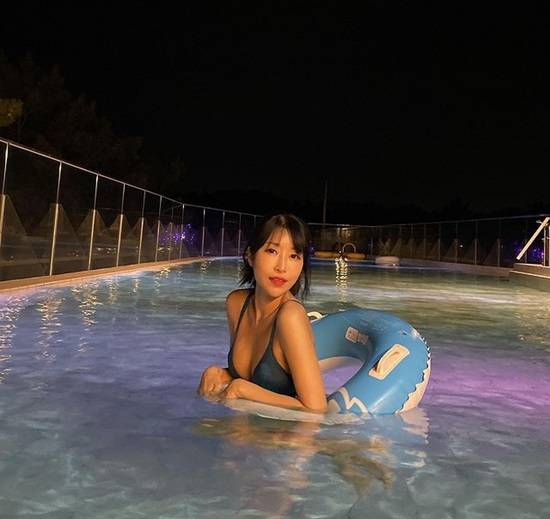 이날 공개된 사진에는 풀빌라 펜션 옥상 루프탑 수영장에서 여유를 즐기고 있는 이세영과 남자친구가 담겼다. 비키니를 입은 이세영은 43kg의 탄탄한 몸매를 자랑했다.