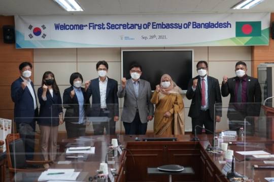 <사진=모키마 베굼(Mokima Begum) 1등 서기관(우측 3번째)과 박귀열 산학협력단장(우측 4번째)>