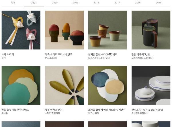| 2021년 우수문화상품 중 공예 분야에 지정된 상품들 목록.(출처=http://www.kribbon.kr) |