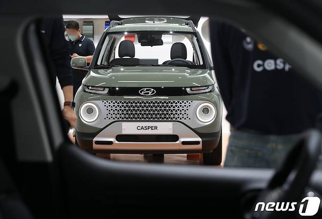 (서울=뉴스1) 이동해 기자 = 29일 오후 서울 성동구에 위치한 브랜드 쇼룸 캐스퍼 스튜디오에 이날부터 온라인 발표회를 시작으로 본격적인 판매에 돌입한 현대자동차 엔트리 스포츠유틸리티차량(SUV) 캐스퍼가 전시돼 있다. 2021.9.29/뉴스1