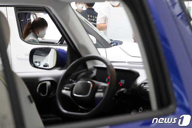 (서울=뉴스1) 이동해 기자 = 29일 오후 서울 성동구에 위치한 브랜드 쇼룸 캐스퍼 스튜디오에 이날부터 온라인 발표회를 시작으로 본격적인 판매에 돌입한 현대자동차 엔트리 스포츠유틸리티차량(SUV) 캐스퍼가 전시돼 있다. 2021.9.29/뉴스1
