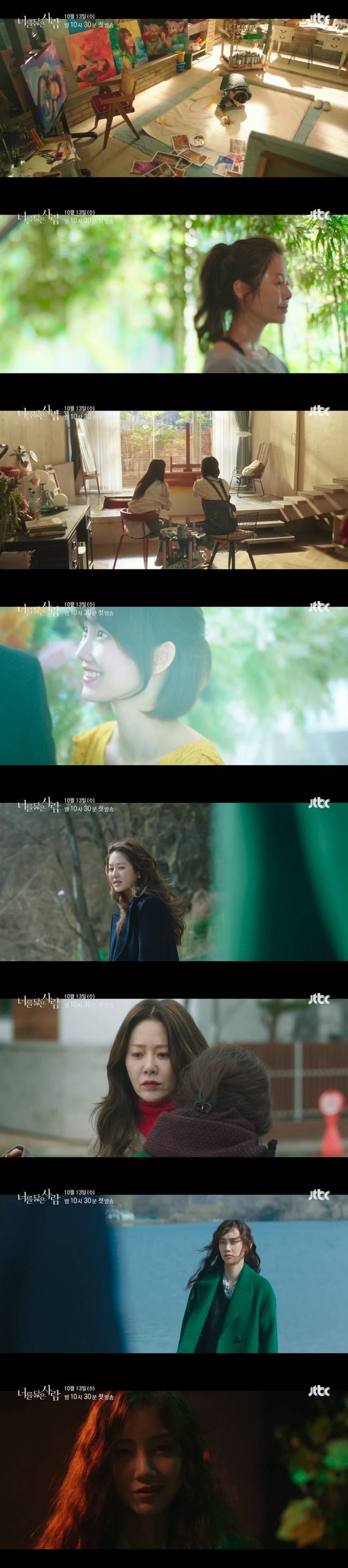 아내와 엄마라는 수식어를 버리고 자신의 욕망에 충실했던 여자 정희주, 그리고 그녀와의 짧은 만남으로 제 인생의 조연이 되어버린 또 다른 여자 구해원의 이야기를 밀도 높은 서사로 그려낼 ‘너를 닮은 사람’은 10월 13일 오후 10시 30분 첫 방송된다. (사진= 셀트리온 엔터테인먼트, JTBC스튜디오 제공)