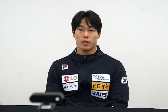 (서울=연합뉴스) 2018 평창 동계올림픽 남자 스켈레톤 금메달리스트 윤성빈(강원도청)이 29일 비대면으로 진행된 썰매대표팀 미디어데이 행사에서 2022 베이징 올림픽을 앞둔 소감을 밝히고 있다. 2021.9.29