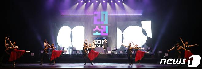 (전주=뉴스1) 유경석 기자 = 올해 20주년을 맞이한 전주세계소리축제 개막 날인 29일 전북 전주시 한국소리문화전당 모악당에서 정보권·이정인 소리꾼과 한유선미리암스발레단의 프레스콜 무대가 펼쳐지고 있다. 2021.9.29/뉴스1