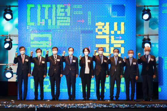 전국 46개 대학에서 혁신 인재 10만 명을 양성하는 ‘디지털 신기술 인재양성 혁신공유대학사업’이 28일 단국대 천안캠퍼스 보건간호관에서 출범식(사진)을 열고 본격 시작됐다. 한국판 뉴딜 과제로 추진되는 이번 사업은 오는 2026년까지 국비 5000억 원이 투입되며 △바이오헬스 △차세대 반도체 △미래자동차 △인공지능(AI) △지능형 로봇 △빅데이터 △실감미디어 △에너지 신산업 등 8대 신기술 분야 대학 컨소시엄으로 운영된다.