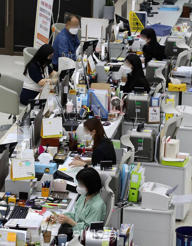[이데일리 방인권 기자] KB국민은행이 가계대출 총량 관리 차원에서 한시적으로 주택담보대출, 전세자금대출, 집단대출의 한도 기준을 줄여 적용하기로 한 29일 서울 시내의 한 KB국민은행 영업점을 찾은 시민들이 은행업무를 보고 있다.