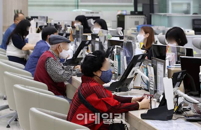 [이데일리 방인권 기자] KB국민은행이 가계대출 총량 관리 차원에서 한시적으로 주택담보대출, 전세자금대출, 집단대출의 한도 기준을 줄여 적용하기로 한 29일 서울 시내의 한 KB국민은행 영업점을 찾은 시민들이 은행업무를 보고 있다.