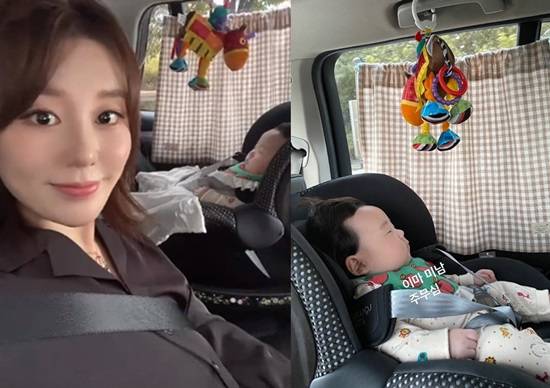 이날 공개된 사진에는 차량으로 이동 중인 나비와 아들의 모습이 담겼다.