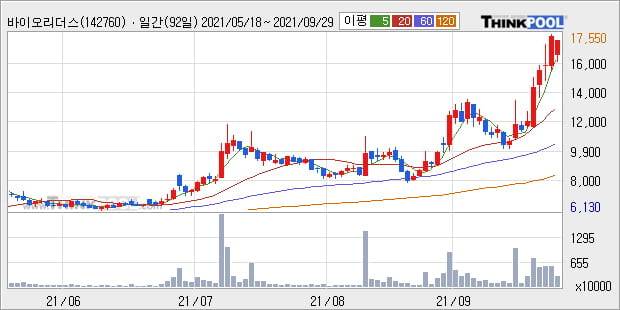 '바이오리더스' 52주 신고가 경신, 단기·중기 이평선 정배열로 상승세