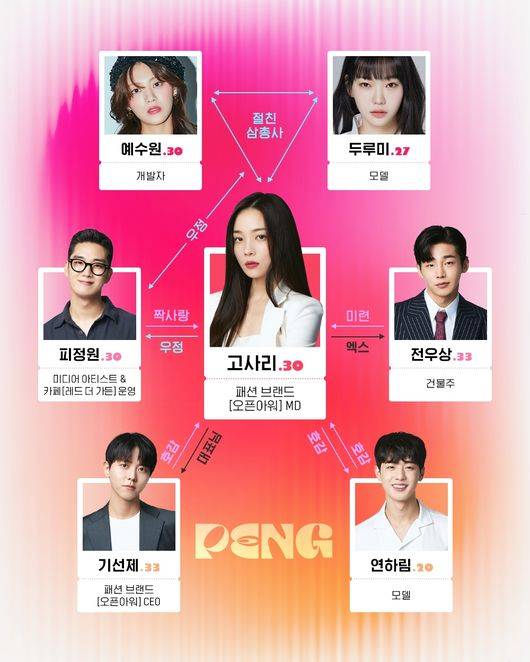 종합 콘텐츠 스튜디오 플레이리스트의 새 드라마 '팽'이 첫 방송을 일주일 앞두고 인물 관계도를 공개했다.