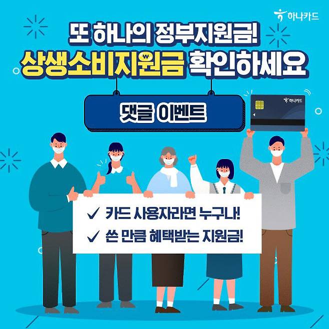 하나카드는 공식 온라인 채널을 통해 '상생소비지원금 소문내기 이벤트'를 진행한다고 29일 밝혔다.