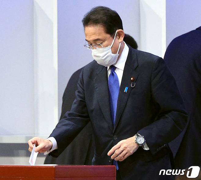 (도쿄 AFP=뉴스1) 금준혁 기자 = 기시다 후미오 자민당 전 정무조사회장이 29일(현지시간) 도쿄에서 열린 집권 자민당 총재 선거에서 투표를 하고 있다