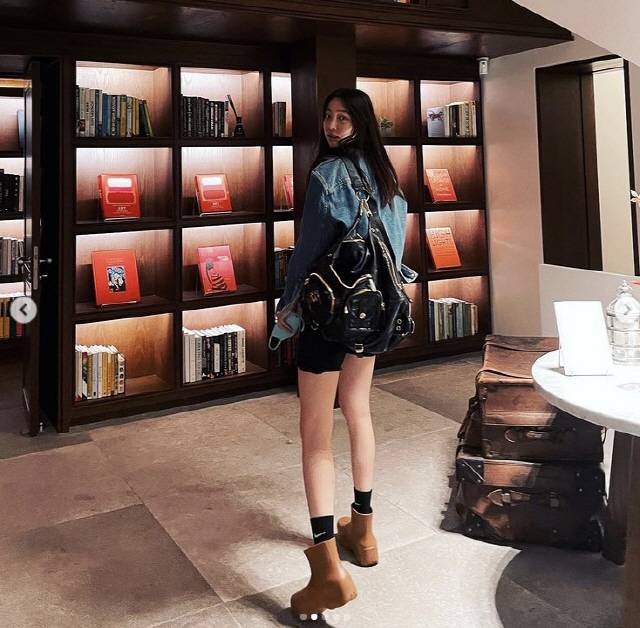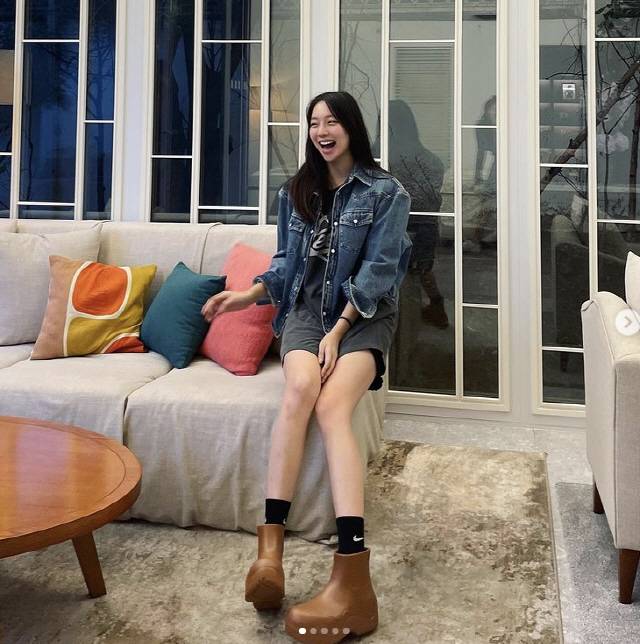이진이는 엄마를 닮아 우월한 피지컬로 모델 다운 길쭉길죽 몸매를 과시했다.