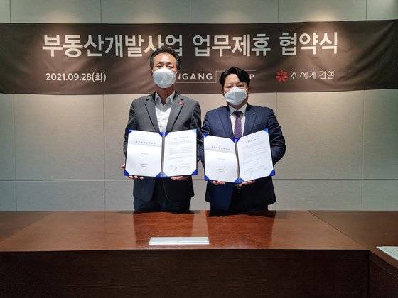 ‘듀클래스’ 브랜드로 잘 알려진 부동산 개발 전문 시행사 ㈜한강그룹은 28일 신세계건설 본사 25층 대회의실에서 주택 개발사업에 관한 양사의 협력을 위해 부동산개발사업 업무 제휴 협약(MOU)을 체결했다.