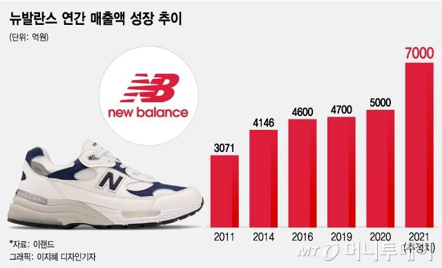 29일 패션업계에 따르면 뉴발란스는 올해 상반기 매출이 전년비 60% 증가한 가운데 2021년 총 매출은 7000억원에 달할 전망이다. 이는 지난해 매출액 5000억원 대비 약 40% 성장한 수치며 역대 최대 매출에 해당된다.