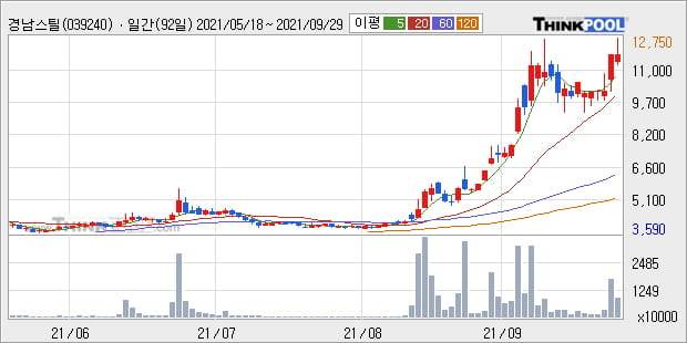 '경남스틸' 52주 신고가 경신, 주가 조정 중, 단기·중기 이평선 정배열