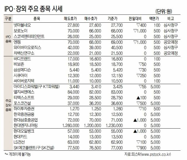 - [표]IPO장외 주요 종목 시세(9월 28일)