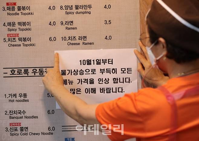 [포토]'10월 1일부터 메뉴 가격 인상합니다'