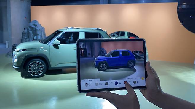 In the Casper Studio, the showroom Hyundai is operating to exhibit Casper for a month in Yongin, Gyeonggi Province, the automaker offers an augmented reality tour for visitors to explore various features and design factors of the Casper using tablet PCs.