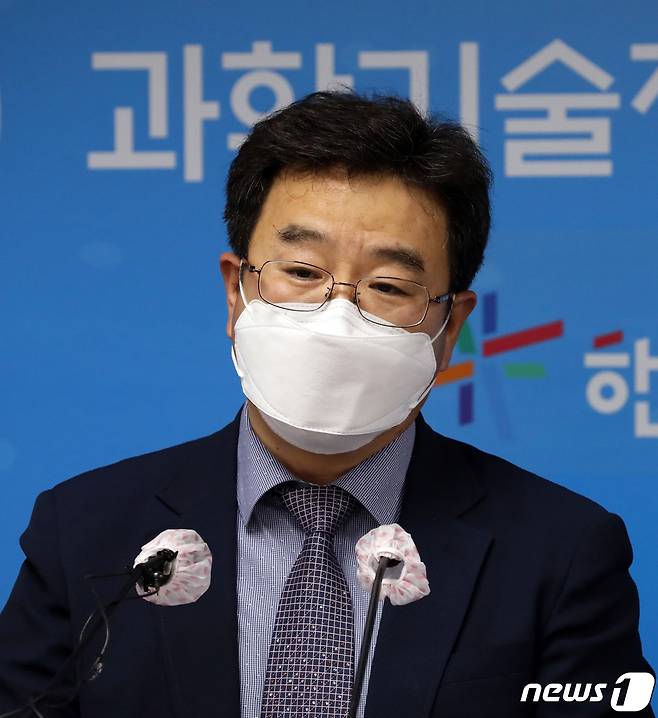 (세종=뉴스1) 장수영 기자 = 권현준 과학기술정보통신부 거대공공연구정책관이 지난 28일 세종시 어진동 과기정통부 기자실에서 '누리호 1차 발사 예정일 10월 21일 확정' 브리핑을 하고 있다.