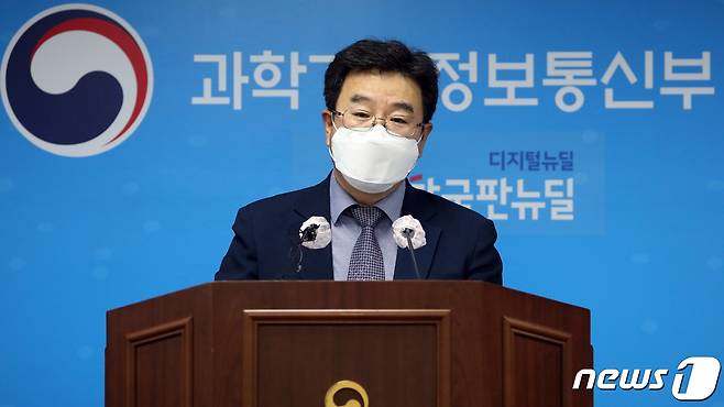 (세종=뉴스1) 장수영 기자 = 권현준 과학기술정보통신부 거대공공연구정책관이 지난 28일 세종시 어진동 과기정통부 기자실에서 '누리호 1차 발사 예정일 10월 21일 확정' 브리핑을 하고 있다.