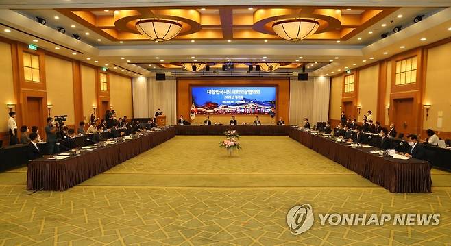 (원주=연합뉴스) 29일 강원 원주시 오크밸리 리조트에서 대한민국시도의회의장협의회 정기회가 진행되고 있다. 2021.9.29 [강원도의회 제공. 재판매 및 DB 금지]