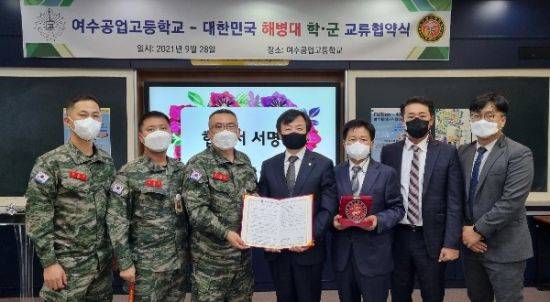 [여수=아시아경제 호남취재본부 심경택 기자] 전남 여수공업고등학교와 해병대가 28일 교내 메이커스페이스실에서 우수한 군 간부 육성을 위한 학·군 교류협약을 체결했다.