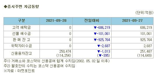 [표]증시주변 자금동향 (9/28)