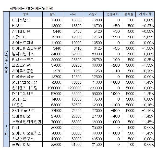 [표]장외주식 거래현황(9/29)
