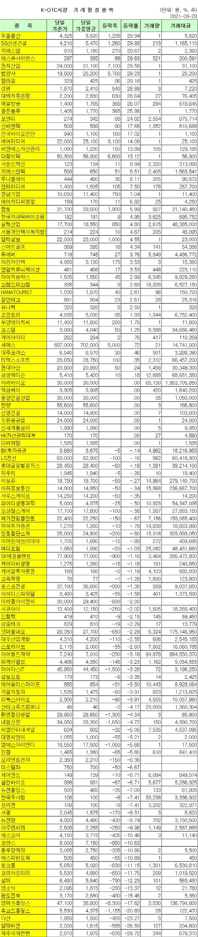 [표]K-OTC 시장 거래 현황(9/29)