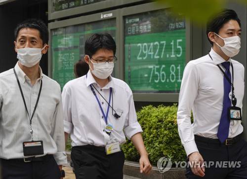 epa09494782 Pedestrians walk past a display showing the Nikkei Stock Average during an afternoon trade session in Tokyo, Japan, 29 September 2021. Tokyo's Nikkei Stock Average fell 639.67 points, or 2.12 percent, to close at 29,544.29 after Wall Street lost more than 569 points amid potential US debt default woes. EPA/KIMIMASA MAYAMA