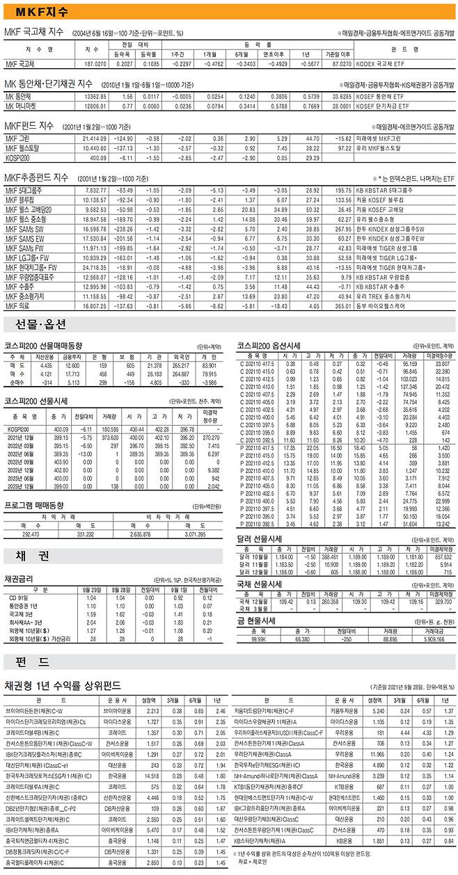 [표] 주요 증시 지표 (9월 29일)