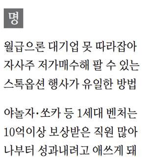 업계 7년 차로 현재 소프트웨어 스타트업에서 근무 중인 B씨도 대기업 연봉을 이길 유일한 방법이 스톡옵션이라고 강조했다. B씨는 "업계에 몸담기 시작할 무렵 삼성전자 무선사업부에 합격한 친구와 비교해도 현재 비슷한 수준이거나 내가 좀 더 많이 벌었다. 생애소득 수준으로 봐도 나이에 비해 조금 더 많은 편"이라며 "스타트업 월급으로는 대기업을 따라가기 힘들고 퇴직할 때는 절대 따라잡을 수 없지만, 스톡옵션이 유일하게 이 같은 차이를 상쇄할 제도"라고 밝혔다.