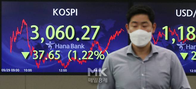 - 외국인 기관 매도에 코스피 털썩, 3069.30…장중 6개월래 최저 기록도