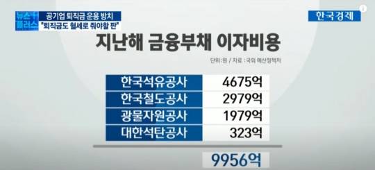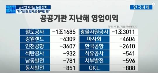 직접적으로 현재 공기업 직원들의 퇴직금을 주기 위해 혈세가 투입되고 있다고 볼 수 없지만 공기업 운영에 이미 많은 혈세가 투입되고 있고요.